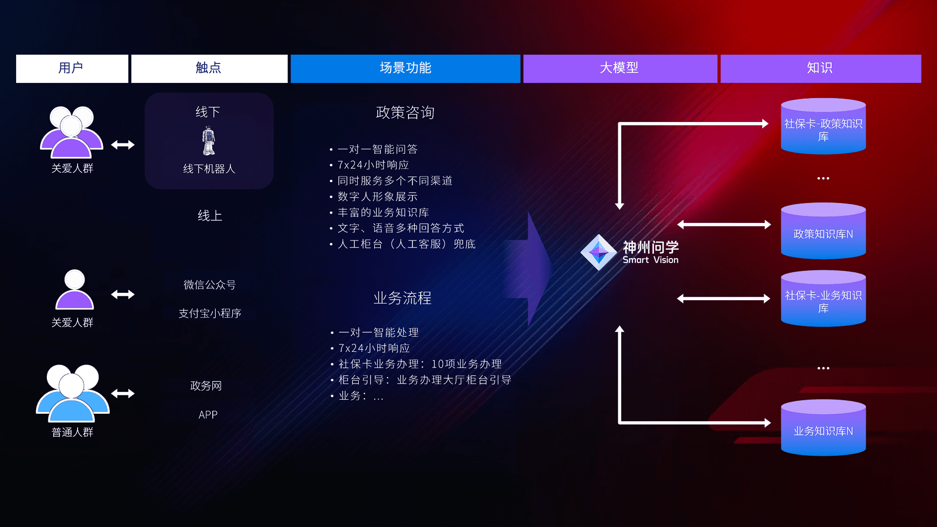 • 线上线下全覆盖:线上提供微信公众号、、、、支付宝小程序、、、政务网、、、、app多种渠道,,,,与线下机器人形成完整服务体系。。。。